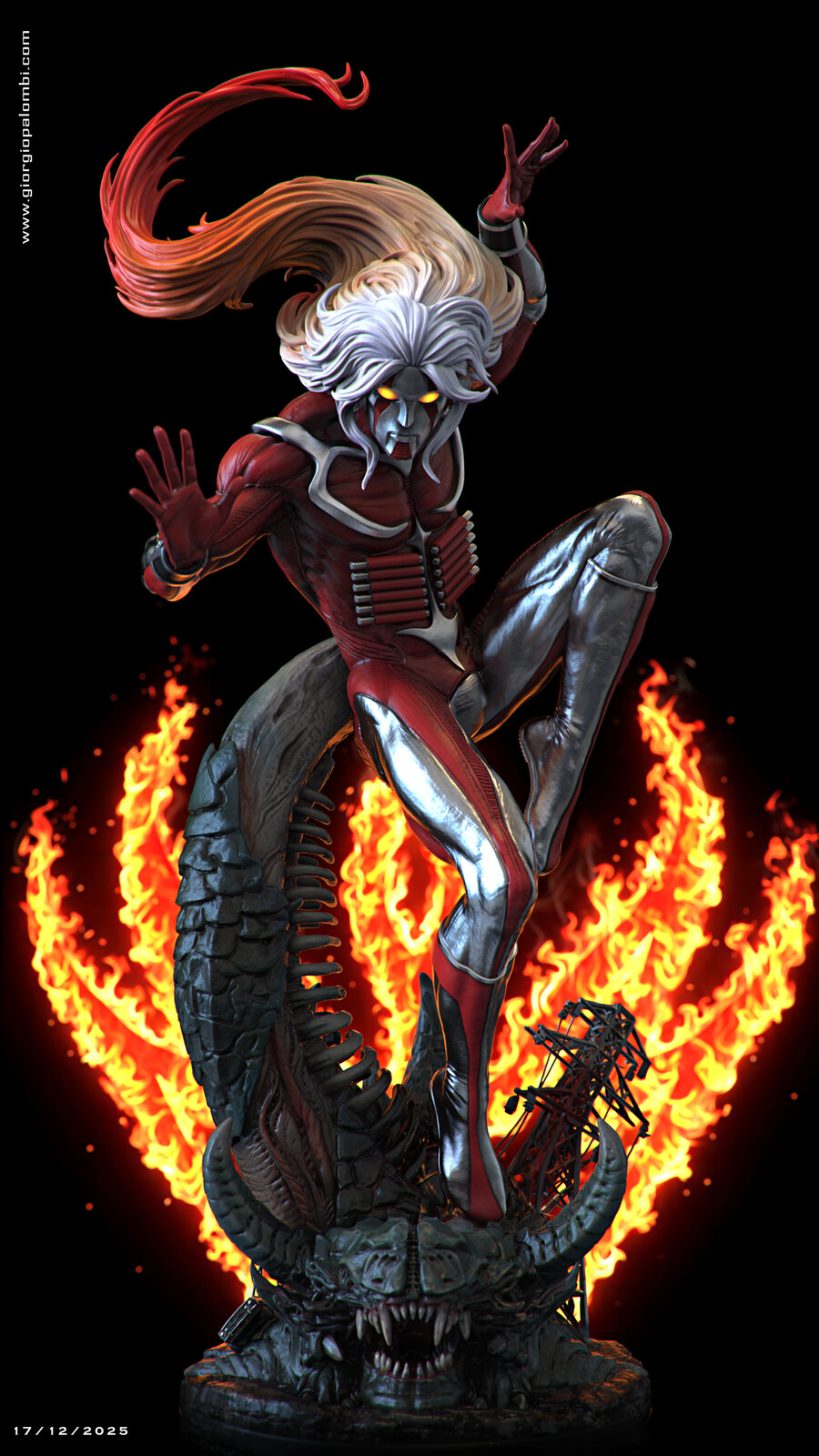 Megaloman is a Japanese tokusatsu television series from the late 1970s. It aired in Italy in the early 1980s. For me, it's a truly iconic character, and I decided to depict it dancing on a defeated Kaiju. The character's pose is reminiscent of Kabuki theater, from which the design and long white hair originally draw inspiration.